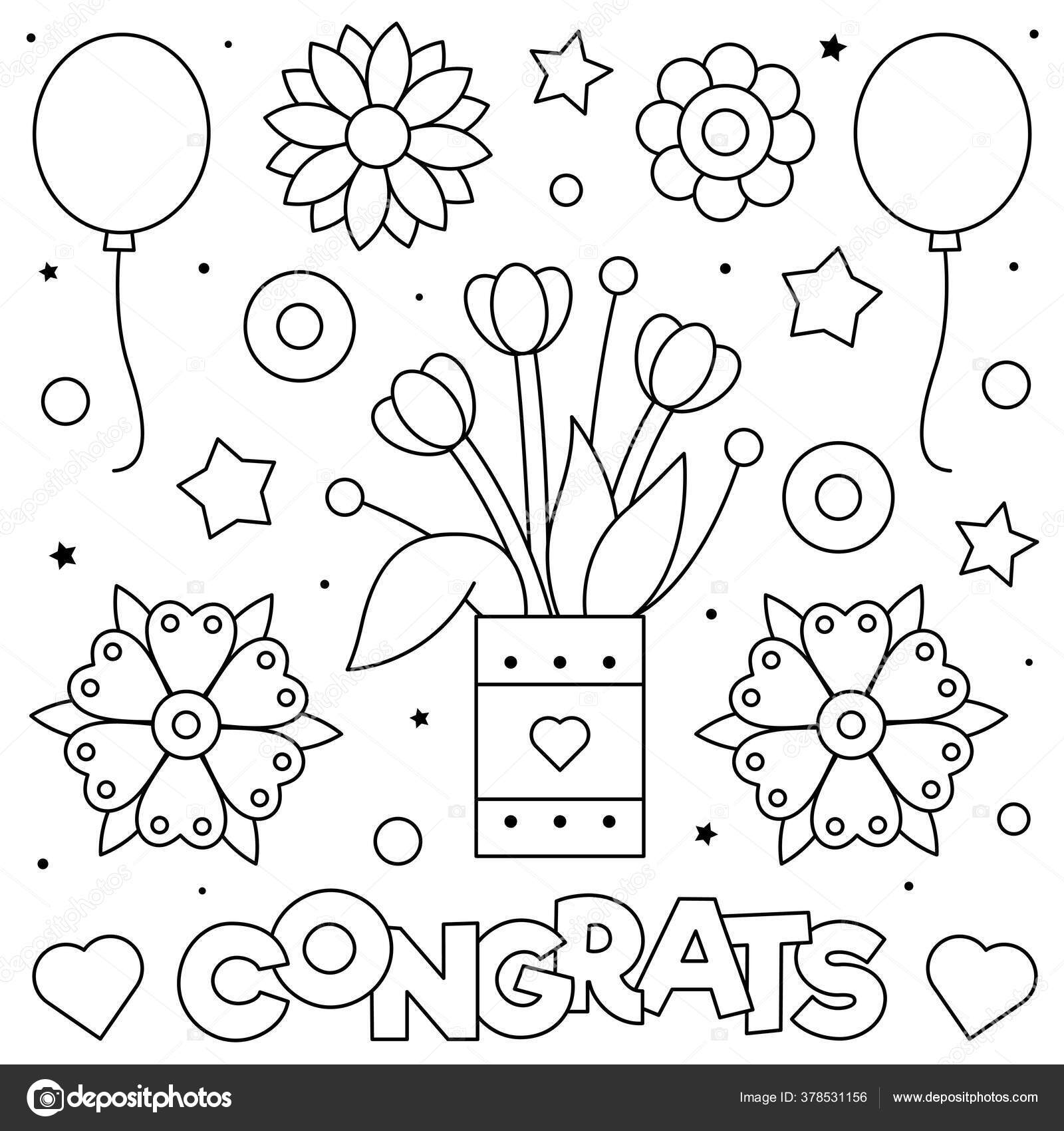 Selamat ya. Halaman mewarnai. Ilustrasi vektor hitam dan putih. — Stok Vektor © blackberryjelly #378531156