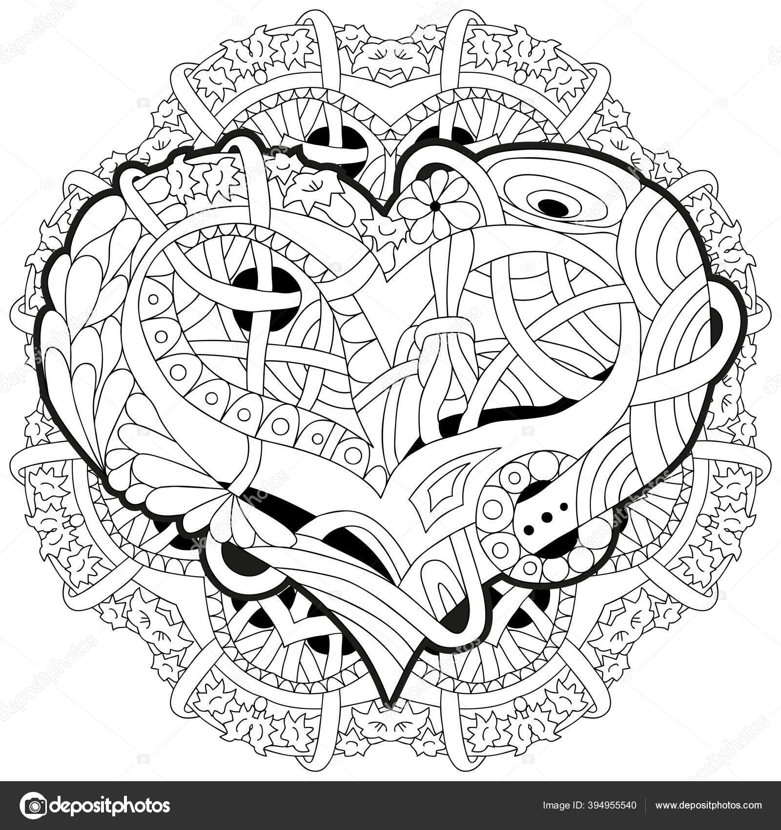 Vektor Teks Buku Pewarnaan Dewasa Dengan Mandala Desain Lukisan Tangan — Stok Vektor © kseniaksenia2 #394955540