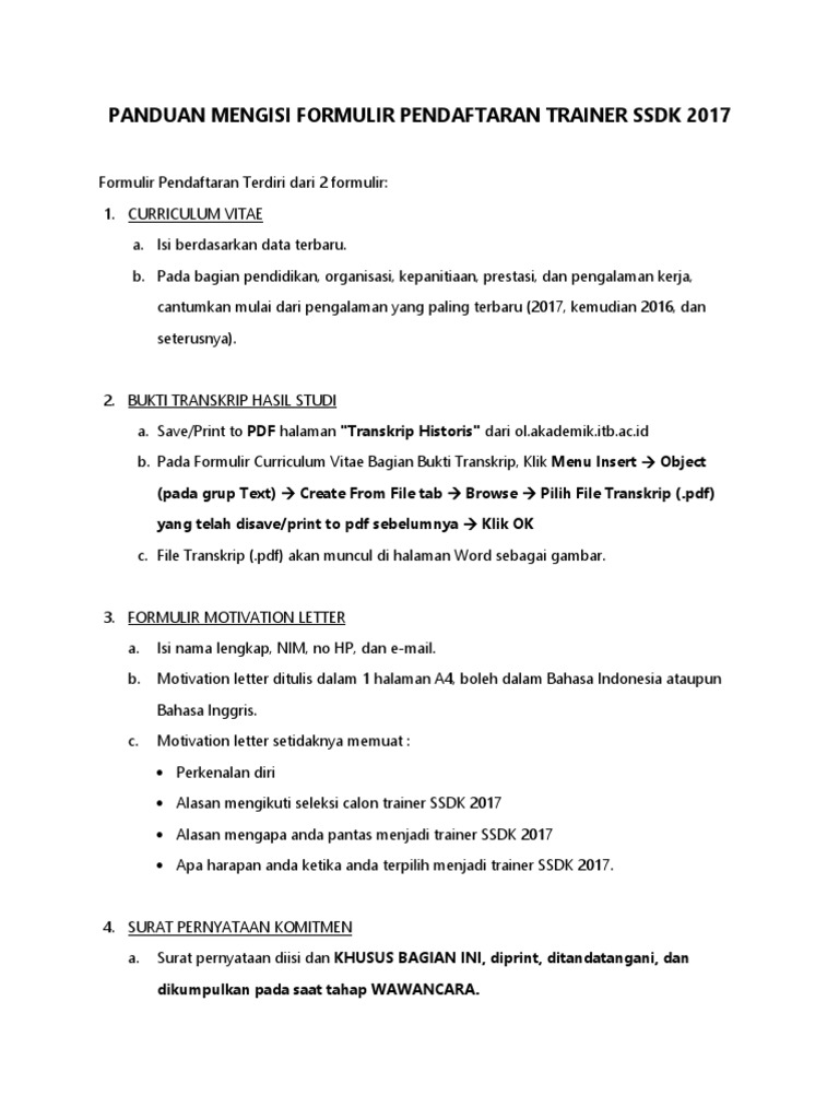 Panduan Mengisi Formulir Pendaftaran Trainer Ssdk 2017