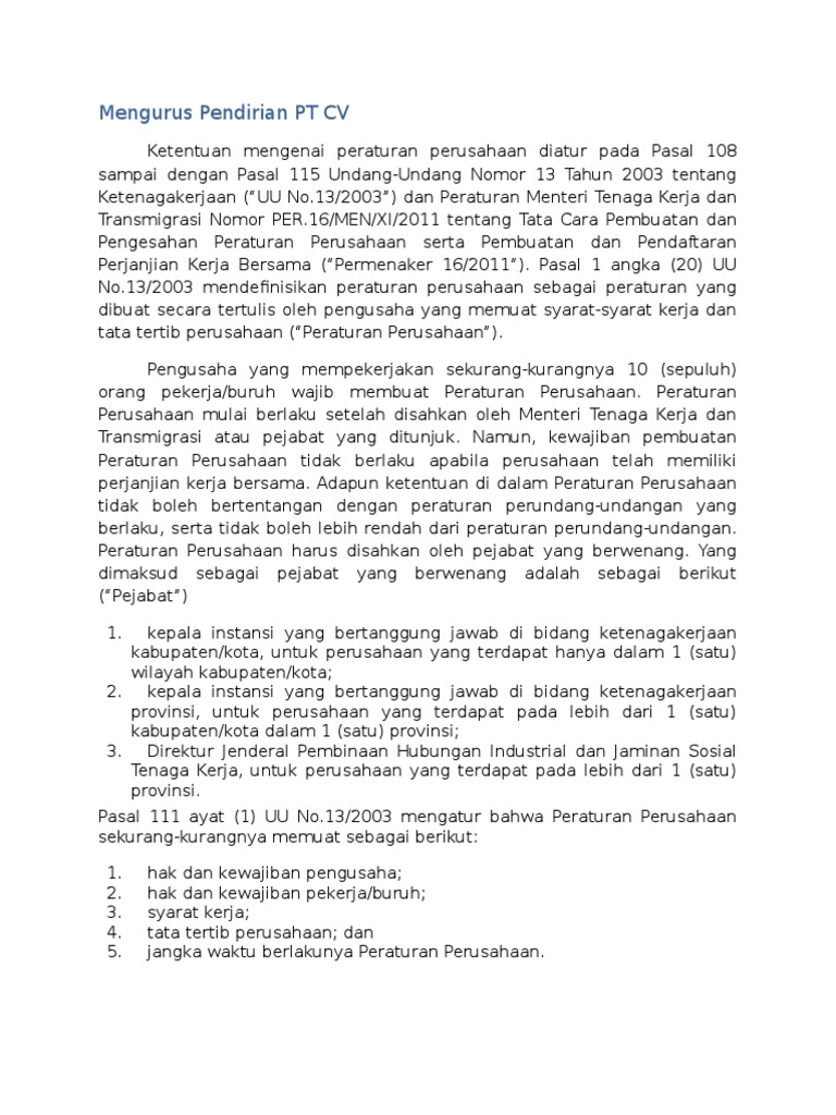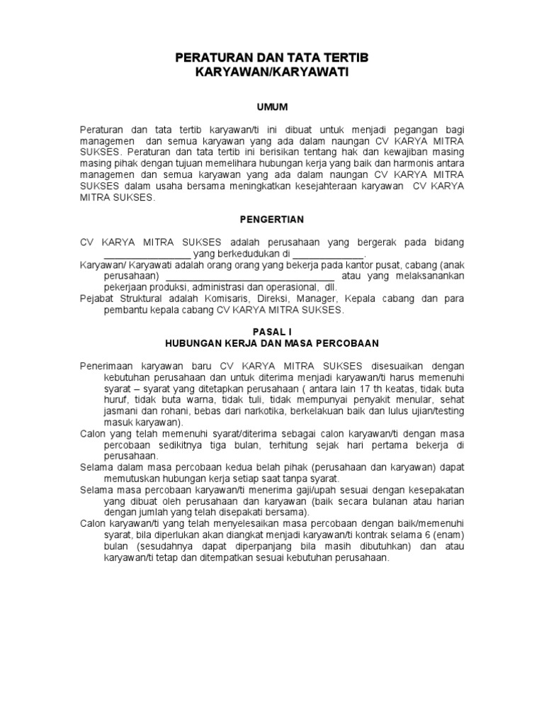 DOC) Contoh Peraturan Perusahaan.docx | Sentot E Baskoro - Academia.edu