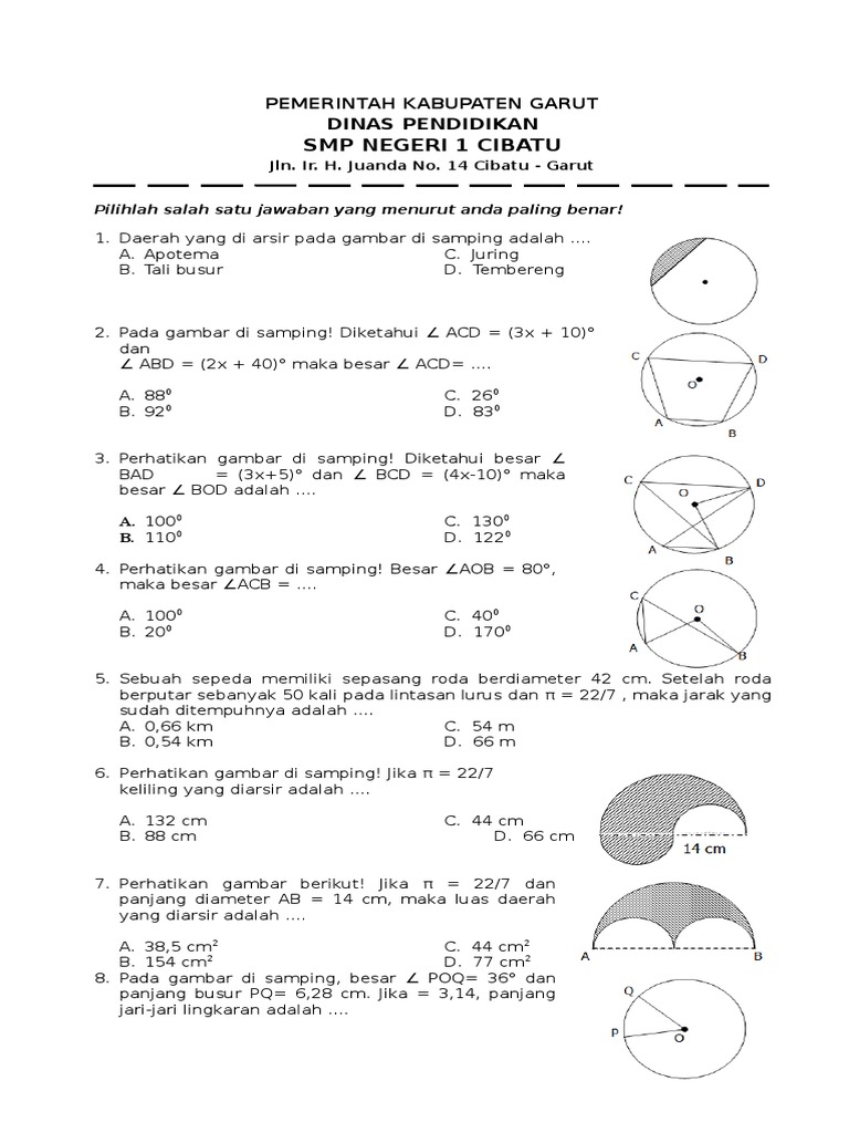 Soal Uji Kompetensi Materi Lingkaran Kelas VIII | Mikirbae.com