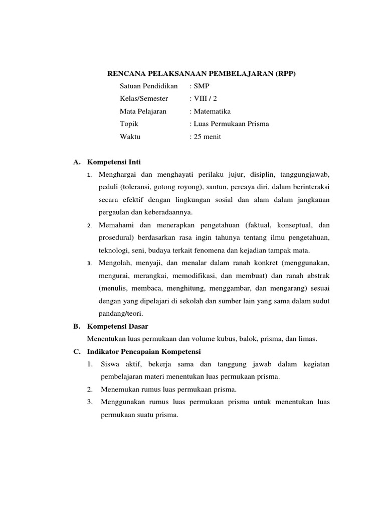 LUAS PERMUKAAN DAN VOLUME BANGUN RUANG SISI DATAR. Kompetensi Dasar. Indikator - PDF Download Gratis