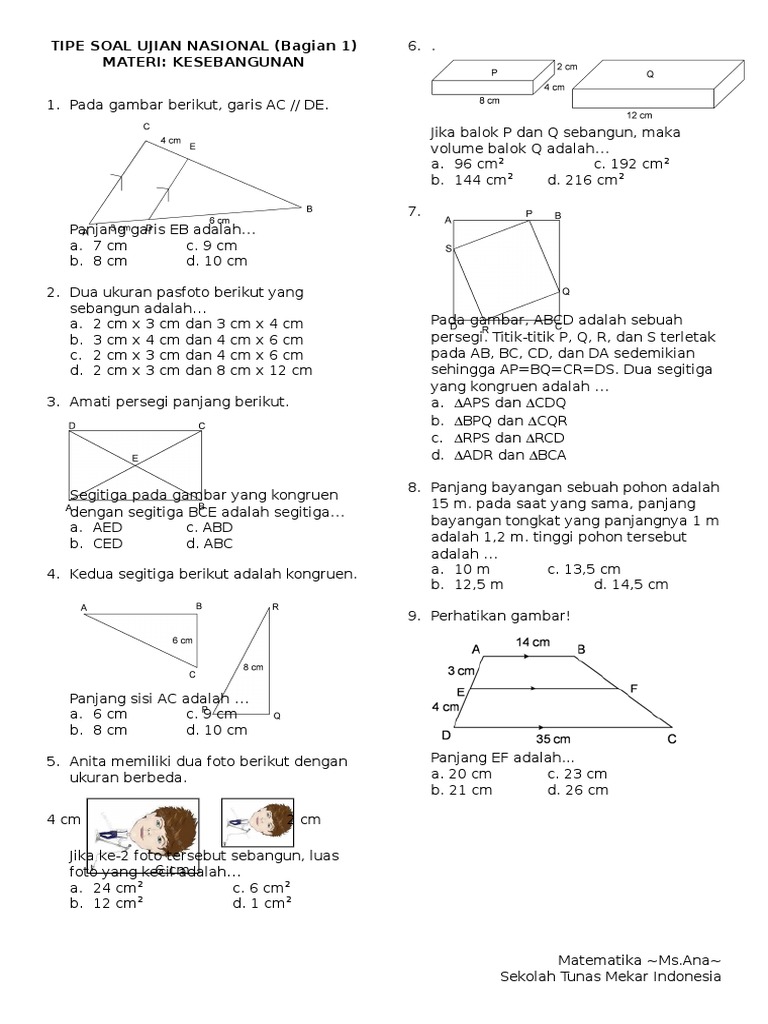 PDF) Latihan Soal Kelas IX: Kesebangunan dan Kekongruenan | fauzan asyidik - Academia.edu