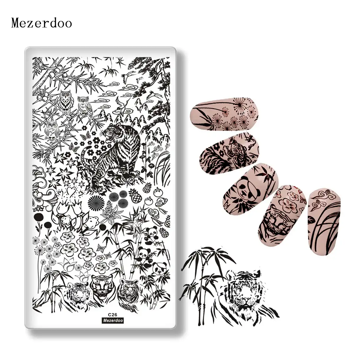 Desain Hutan Harimau Kuku Stamping Gambar Piring Panda Burung Hantu Kuku Stensil Bambu Bunga Tanaman Pola Kuku Manikur Seni C26| | - AliExpress
