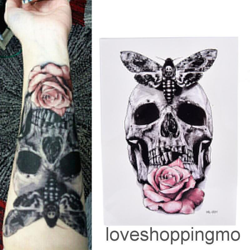 Murah Keren Tatto Tato Sementara Tahan Air Gambar Tengkorak Bunga Kupu Kupu Skull Rose Butterfly di Lapak ALKANA STORE | Bukalapak