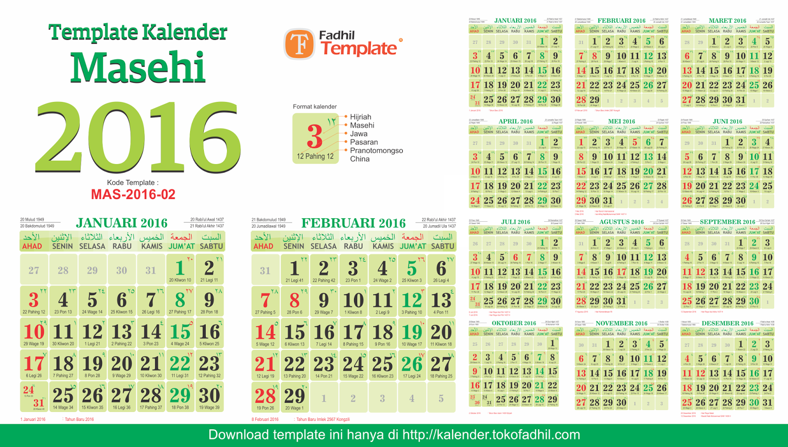 Jual Template Kalender 2016 01, dilengkapi hari libur nasional dan hijriyah - Kota Semarang - fadhiltemplate | Tokopedia