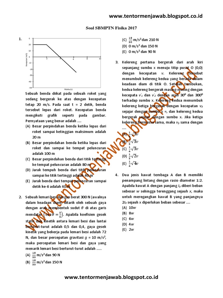 SOAL DAN PENYELESAIAN FISIKA SBMPTN 2017~Contoh Soal Dan Penyelesaian Fisika
