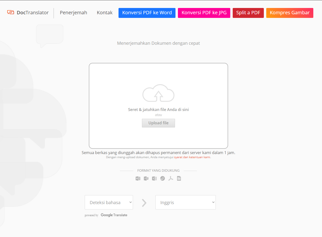 Penerjemah Dokumen Online Gratis - Mempertahankan layout dokumen Anda (Word, PDF, Excel, Powerpoint, OpenOffice, teks)