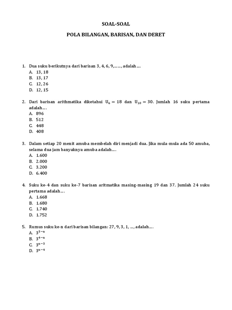 Contoh Soal Psikotes Matematika Deret Angka | kumpulan materi pelajaran dan contoh soal 5