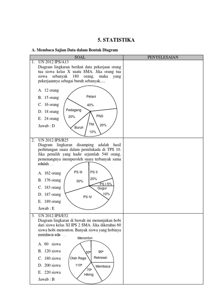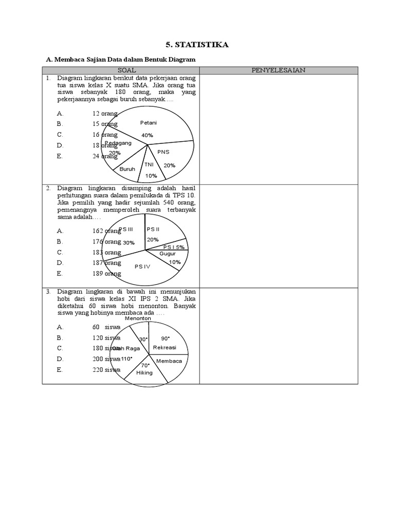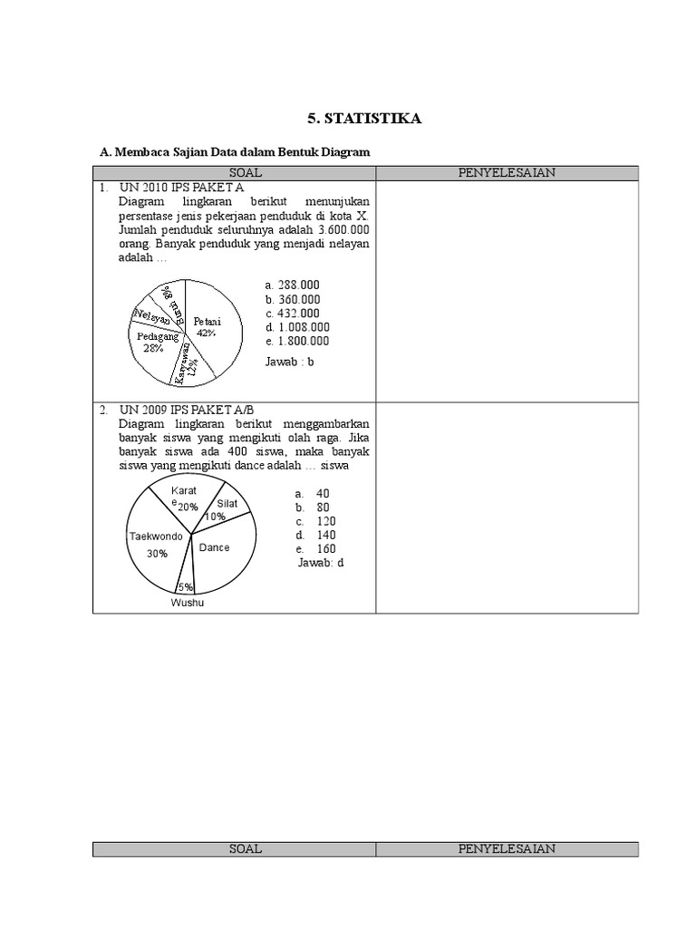 5. STATISTIKA - . STATISTIKA A. Membaca Sajian Data dalam Bentuk Diagram SOAL PENYELESAIAN 1. UN 2010 IPS PAKET A Diagram lingkaran berikut menunjukan persentase jenis … - [PDF Document]