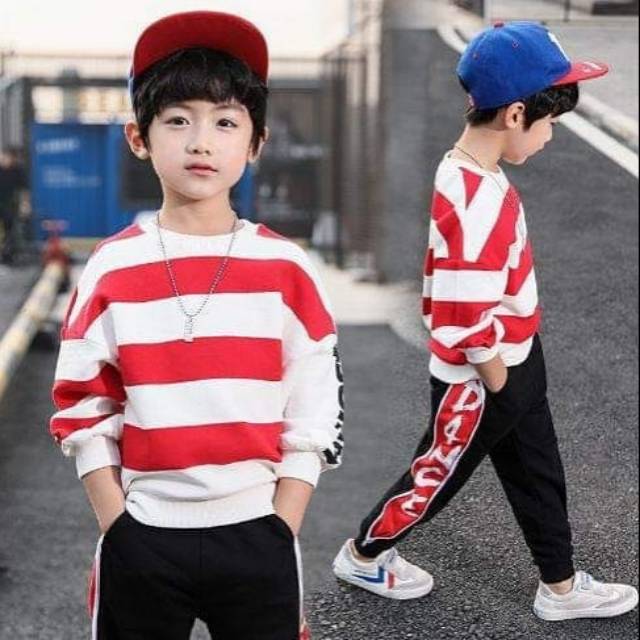 Teen Boy Stripe Red Set (AJO-12), IDR 260rb | Shopee Indonesia