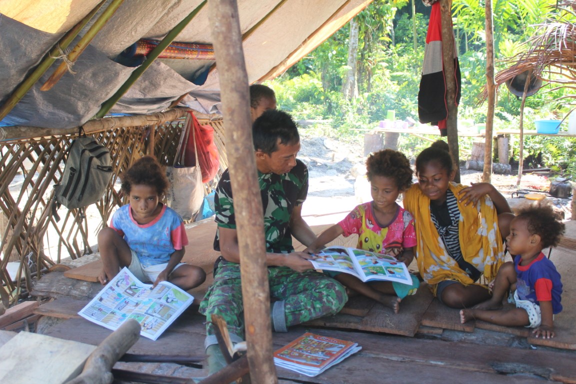 Media Padjajaran Nusantara Indonesia: ANGGOTA SATGAS TMMD AJAK ANAK-ANAK BERTEMAN DENGAN BUKU