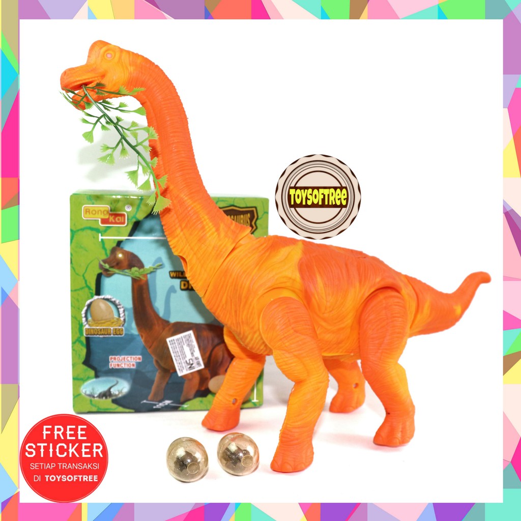 Mainan Dinosaurus Brachiosaurus / Dino leher panjang Rong Kai bertelur jalan dengan proyektor | Shopee Indonesia
