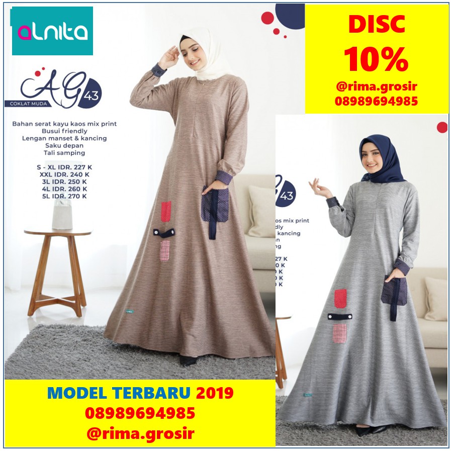 ORIGINAL TERBARU 2019 GAMIS ALNITA AG 43 Syari Abu Coklat Kaos | Shopee Indonesia