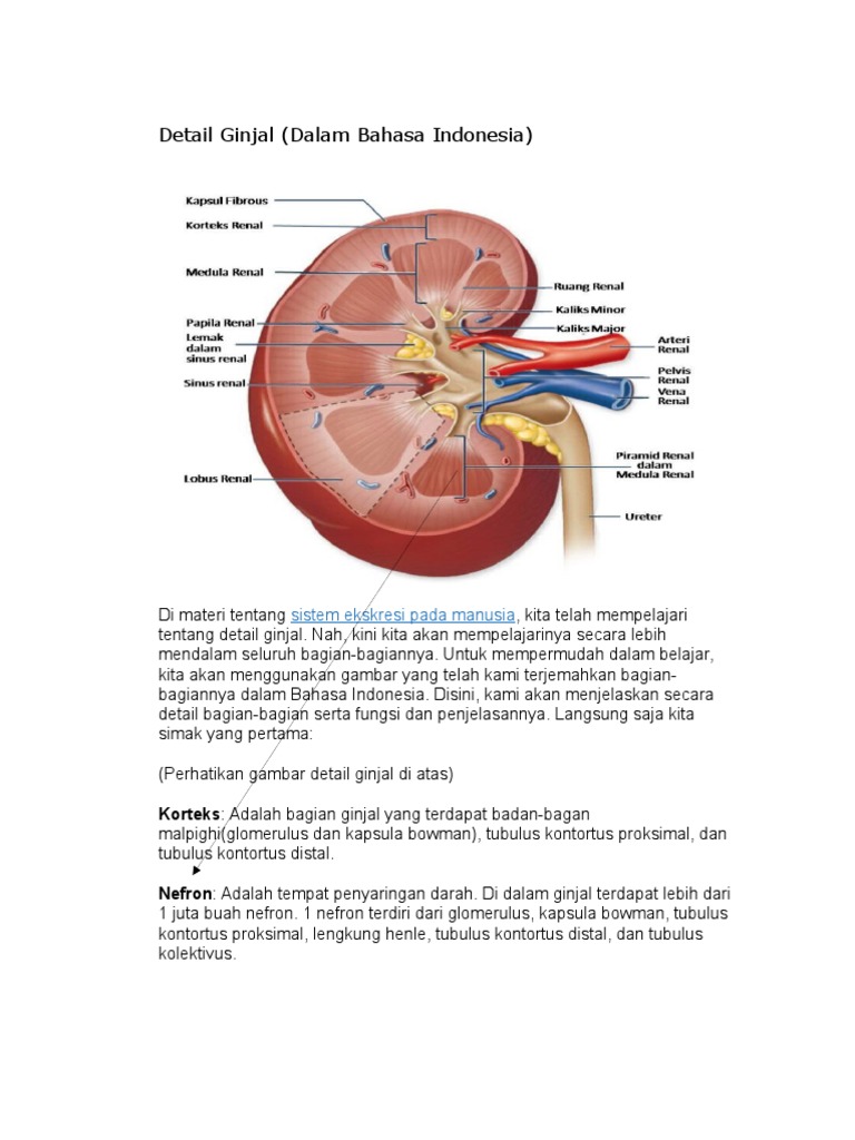 Bagian Bagian Ginjal Dan Fungsinya - Berbagai Bagian Penting