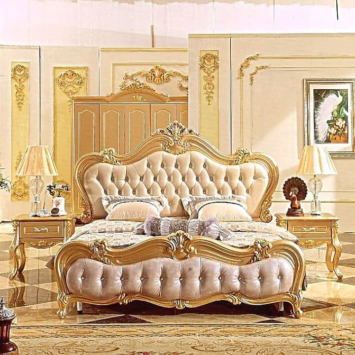 Set Kamar Mewah Elegan Ukian Klasik Warna Gold | Furniture Kamar Jati