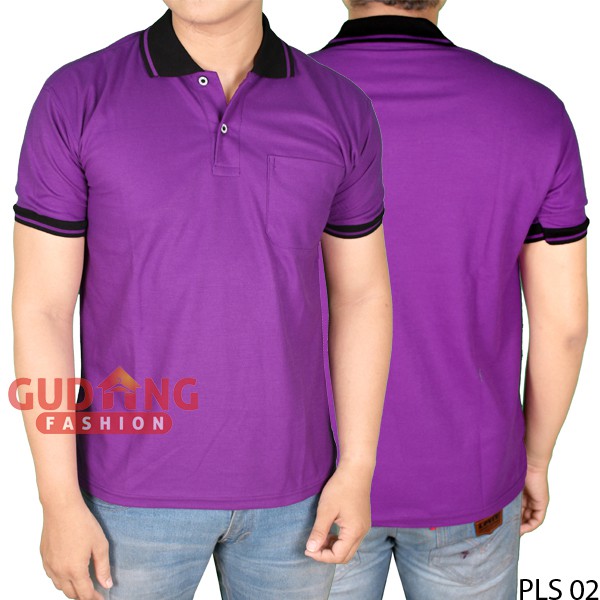 Gudang Fashion Kaos Polo Shirt Kerah Ungu Tua Kerah Hitam | iLOTTE