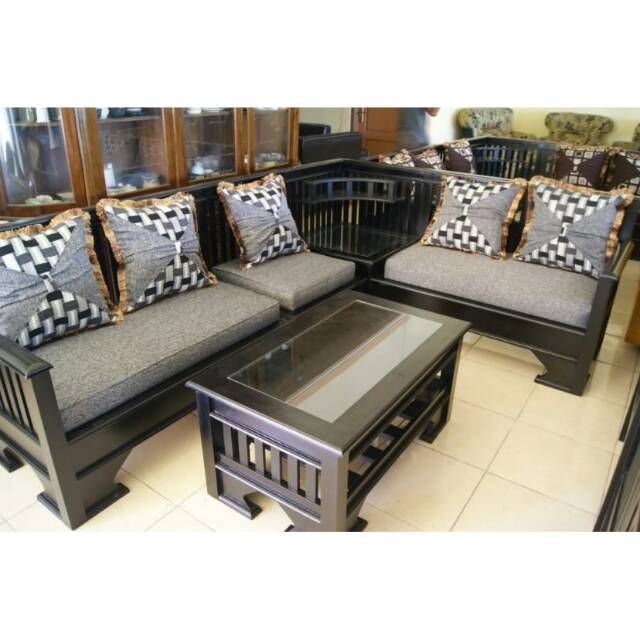 kursi sudut minimalis jati sofa kursi tamu lemari bufet meja makan | Shopee Indonesia