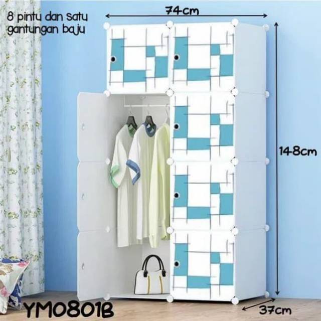 OPR - TERLARIS Lemari Pakaian Plastik Portable Import 8 Pintu + 1 Gantungan Baju & Lemari Pakaian 4 Kotak KARAKTER Praktis Karakter ( YK0801B ) ( YD0801B ) ( QW0801B ) | Lazada Indonesia