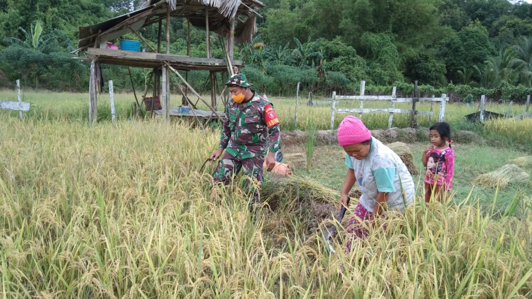 TURUN KE SAWAH BABINSA AWANG BANTU PETANI PANEN PADI | Kodam VI/Mulawarman