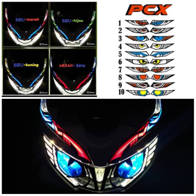 STIKER STICKER MATA ELANG + ALIS MOTIF MIX WARNA LAMPU PCX 150 LOKAL | Shopee Indonesia