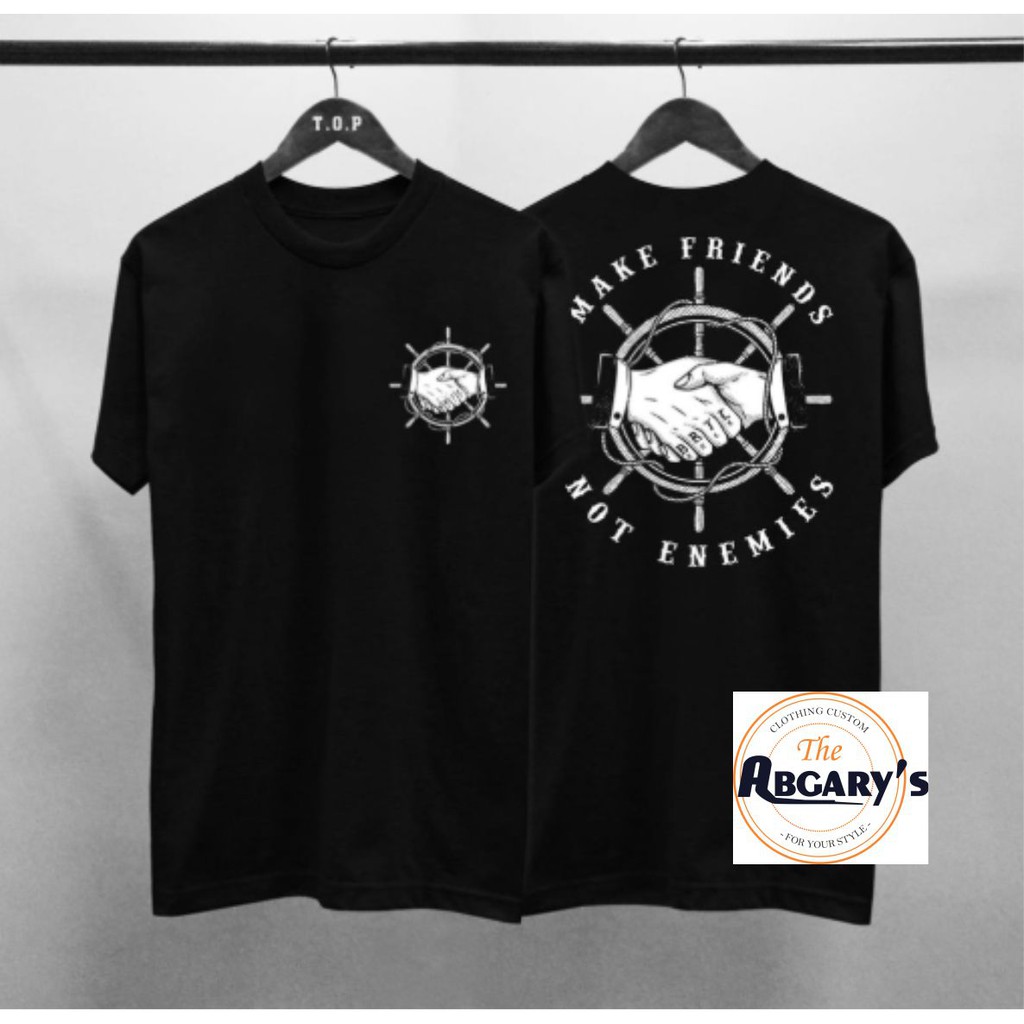 KAOS PRIA TEMA PERSAHABATAN MAKE FRIENDS NOT ENEMIES GAMBAR JABAT TANGAN | Shopee Indonesia