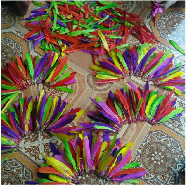 Aksesoris Bulu ayam kaku warna warni isi 100 helai dijahit bisa lepasan | Shopee Indonesia