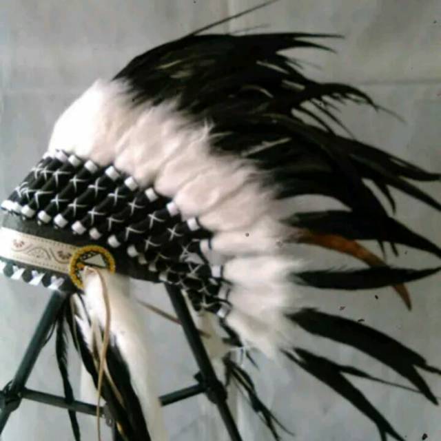 Topi Indian/warbonet Bulu Ayam Lancar Hitam Putih | elevenia