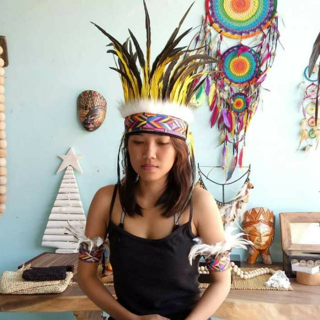 headband / topi bulu ayam tarian tradisional papua, dayak | Shopee Indonesia