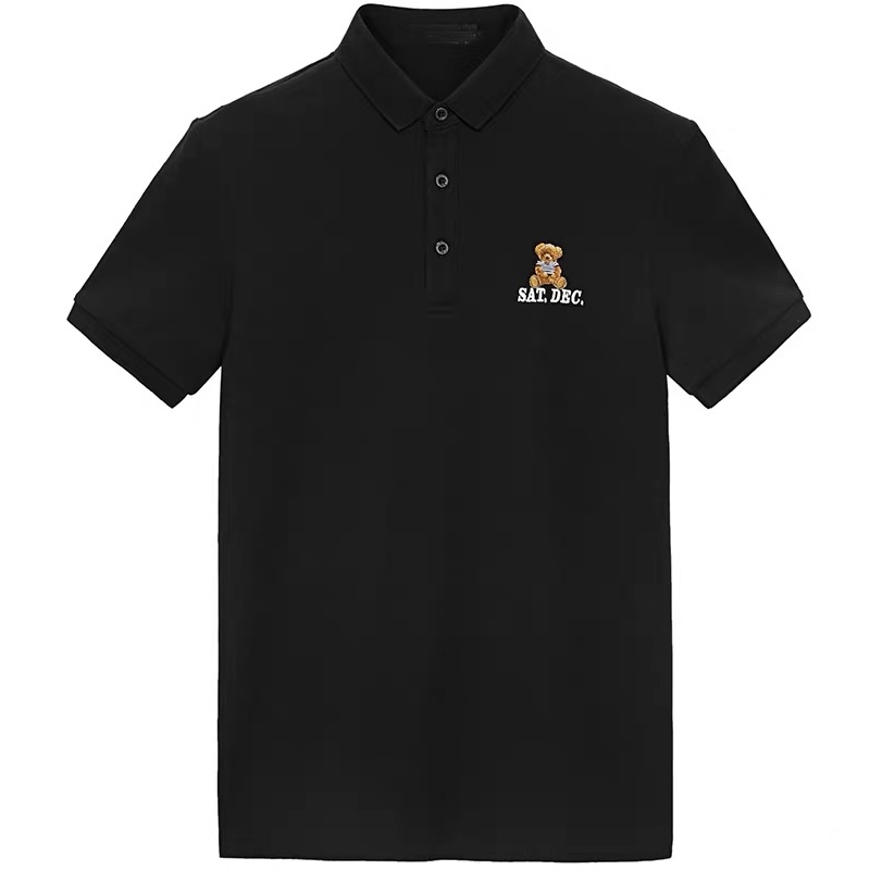 Musim panas hitam dan putih bordir polo pola baju beruang baru kerah T-shirt lengan pendek segar Pau | Shopee Indonesia