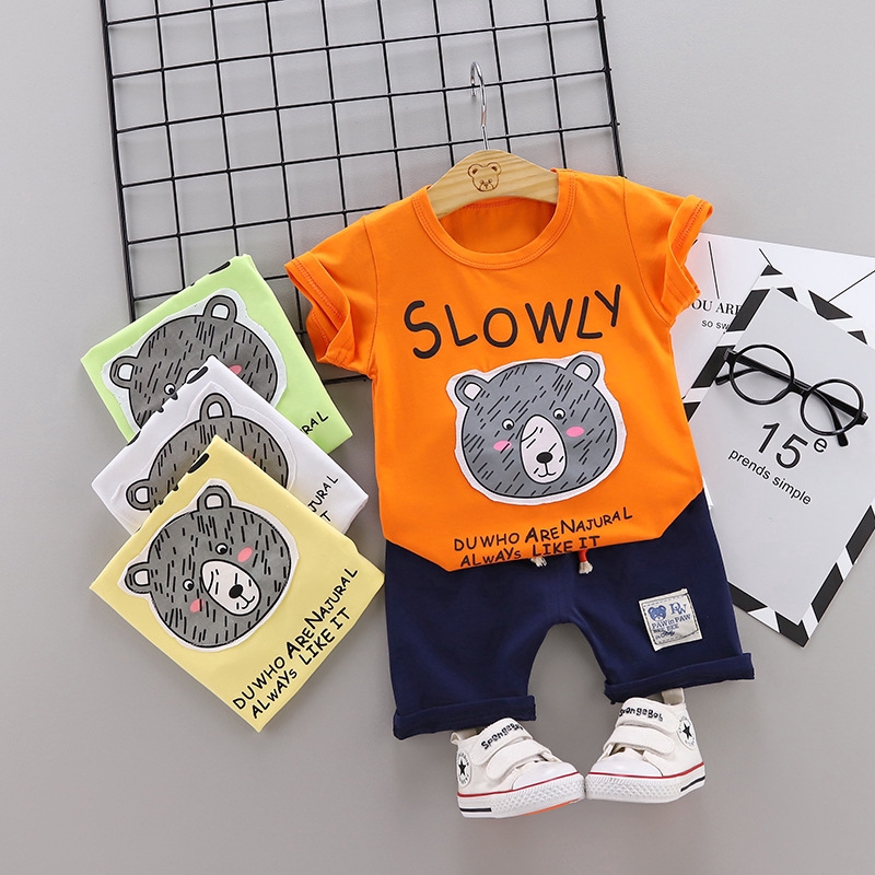 Setelan Kaos T-shirt Korea Chic Anak Laki-laki Lengan Setengah Gambar Beruang+celana | Shopee Indonesia