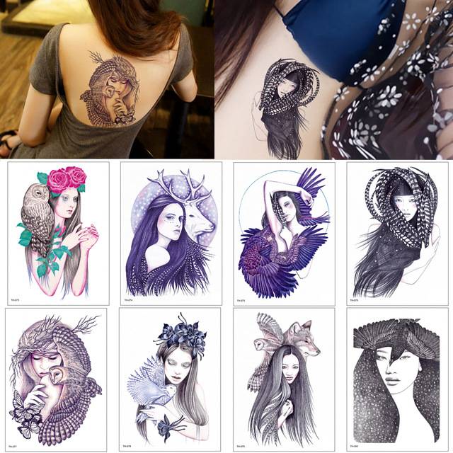 Gambar wanita owl burung hantu seri TH temporary tattoo tato temporer fashion premium quality | Shopee Indonesia