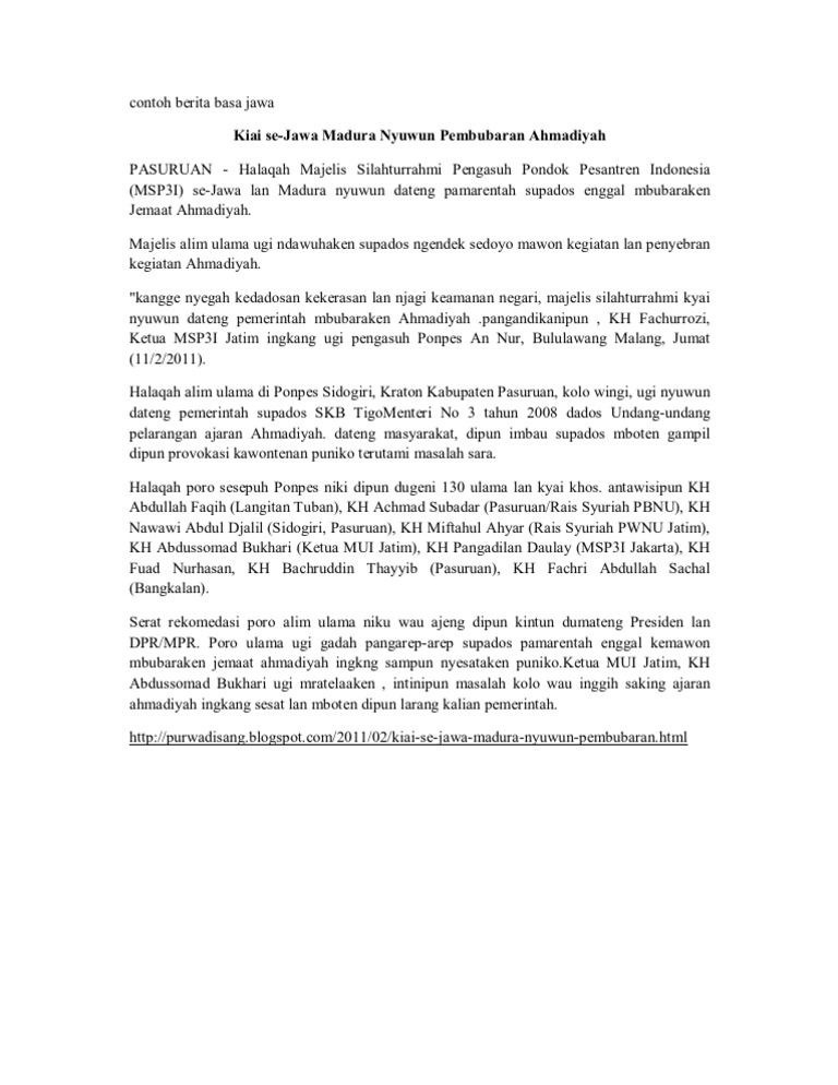Contoh Teks Berita Dalam Bahasa Jawa - Barisan Contoh