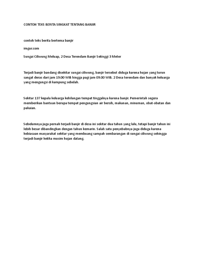15+ Contoh Teks Berita Singkat Tentang Pendidikan Banjir dll (5W 1H) | Salamadian