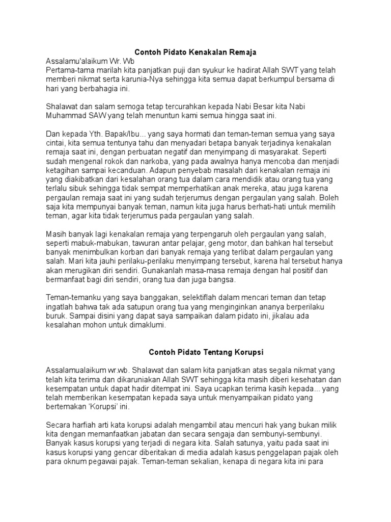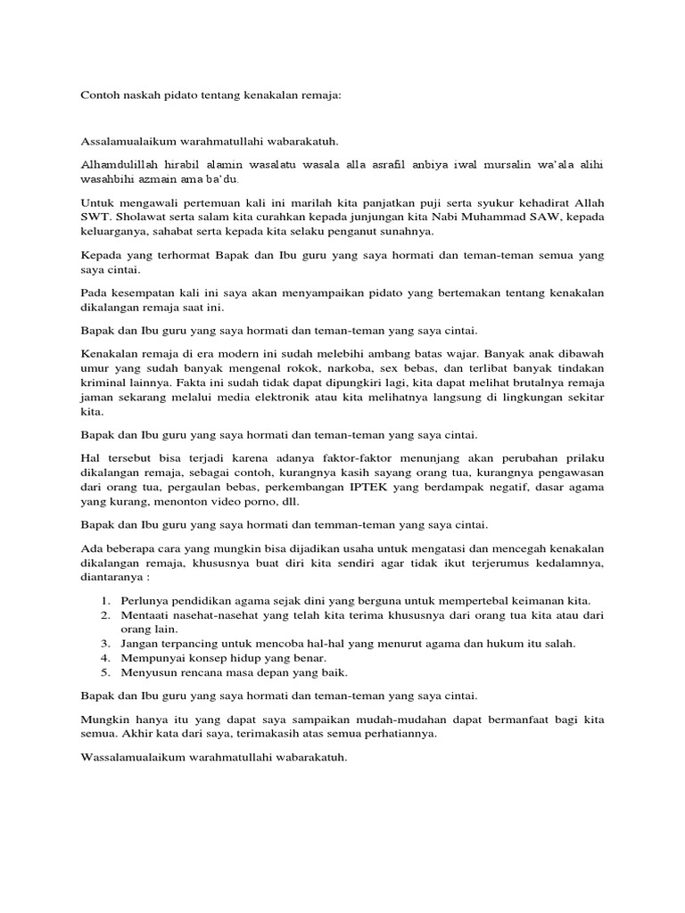 DOC) Pidato Kenakalan Remaja | Wira Praja - Academia.edu