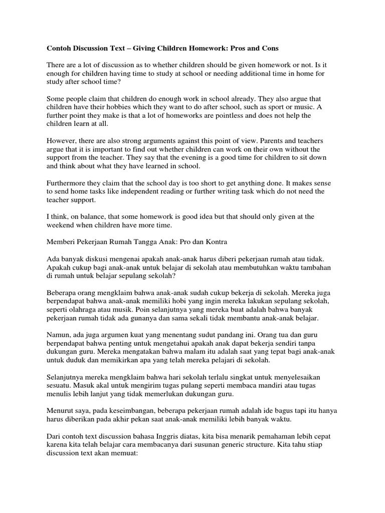 Contoh Discussion Text – Giving Children Homework: Pros and Cons