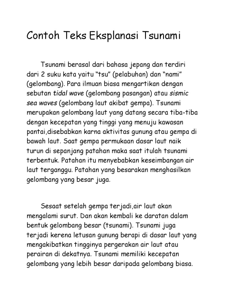 Contoh Teks Eksplanasi Tsunami Dan Procedur