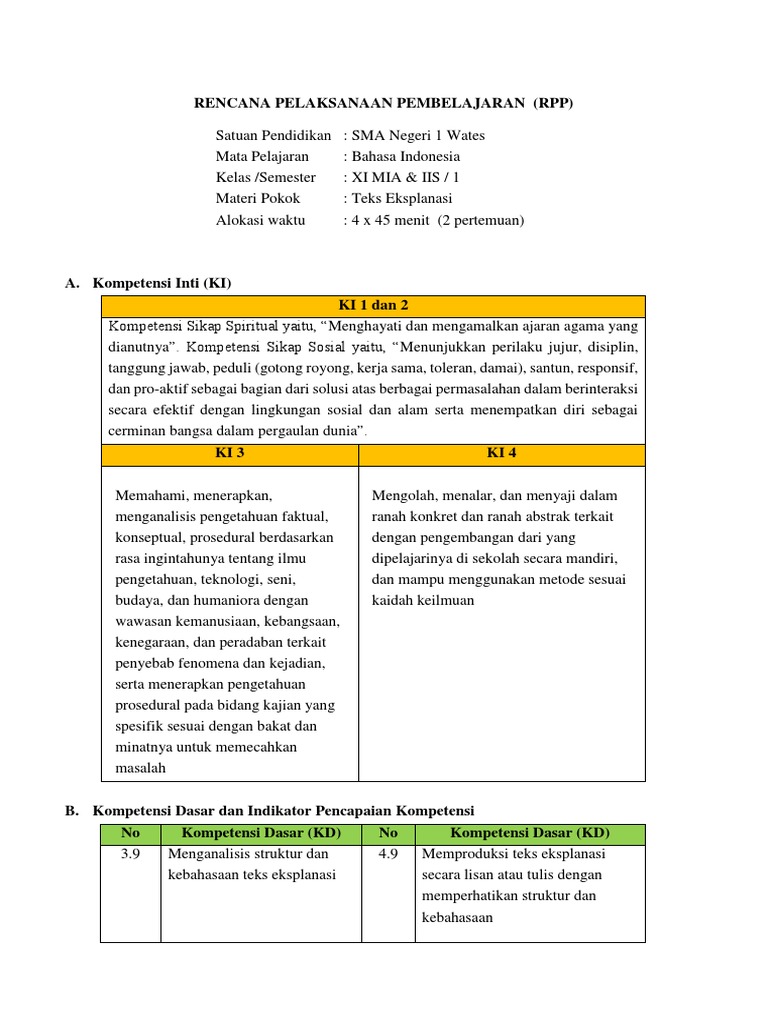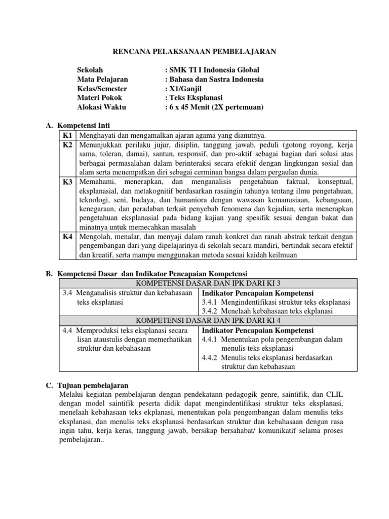 RPP teks eksplanasi
