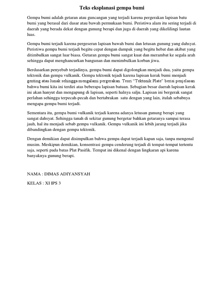 Contoh Teks Eksplanasi Gempa Bumi Di Lombok - Surat Rasmi Ra