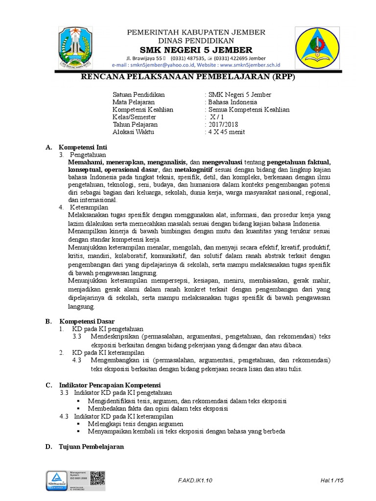 Web viewMateri Pokok :Struktur teks eksposisi Alokasi Waktu:2Minggu x 4 Jam pelajaran @ 45 Menit… - [DOCX Document]