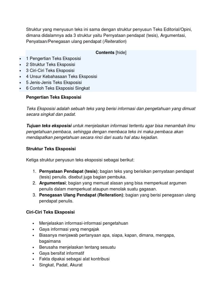 7 CONTOH Teks Eksposisi Singkat/Pendek Beserta Strukturnya Terbaru - Ranking Kelas