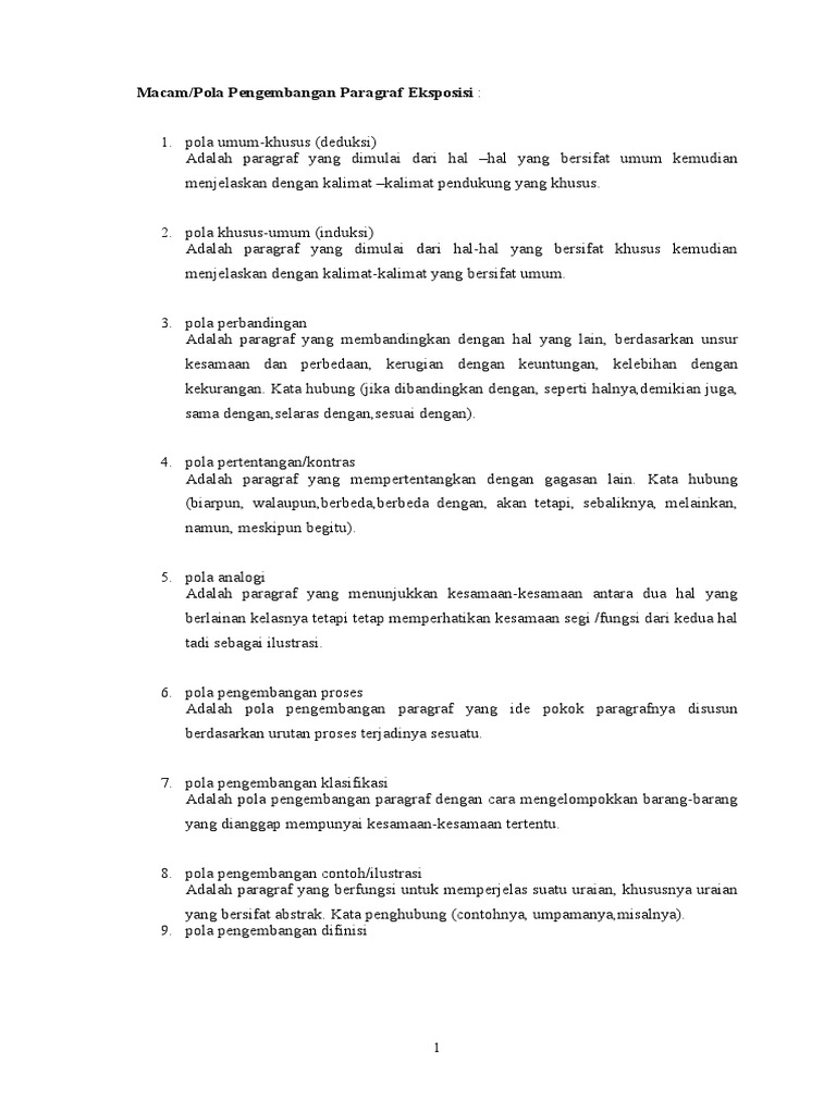 Sebutkan Beberapa Jenis Pengembangan Teks Eksposisi