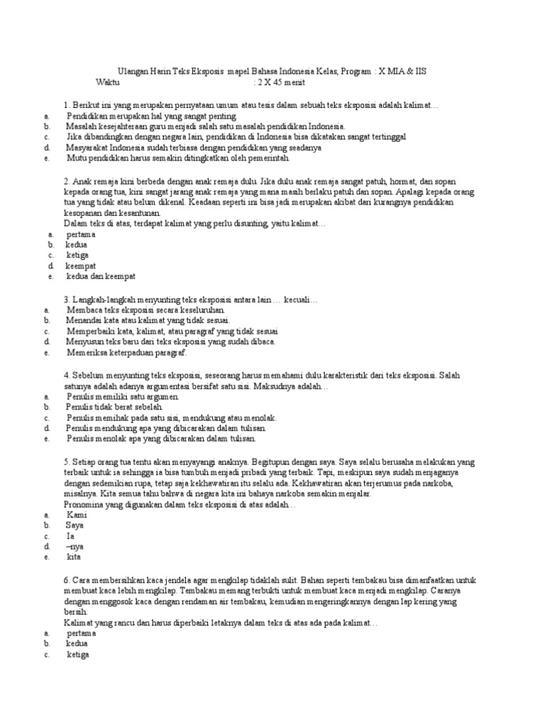 BANK SOAL Teks Eksposis Mapel Bahasa Indonesia Kelas
