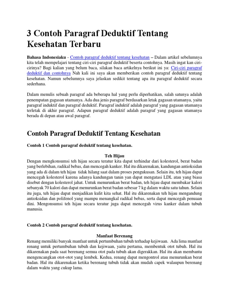 contoh paragraf deduktif dan induktif tema olahraga - Brainly.co.id