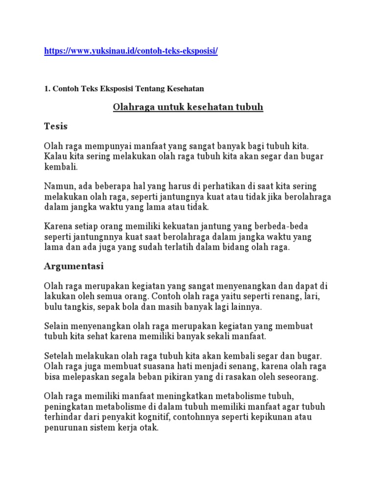 Olahraga untuk kesehatan tubuh Tesis: 1. Contoh Teks Eksposisi Tentang Kesehatan