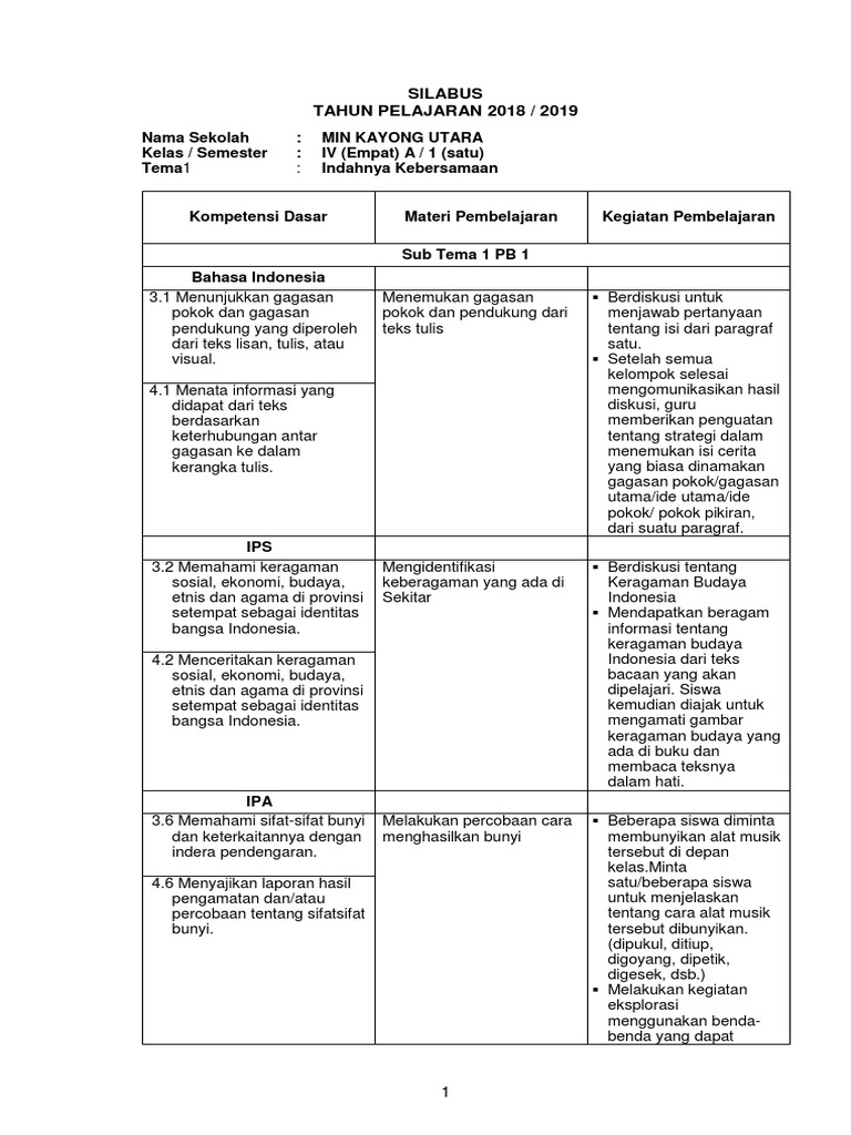 Silabus K13 Kelas 4 Revisi 2018 Semesassaser 1