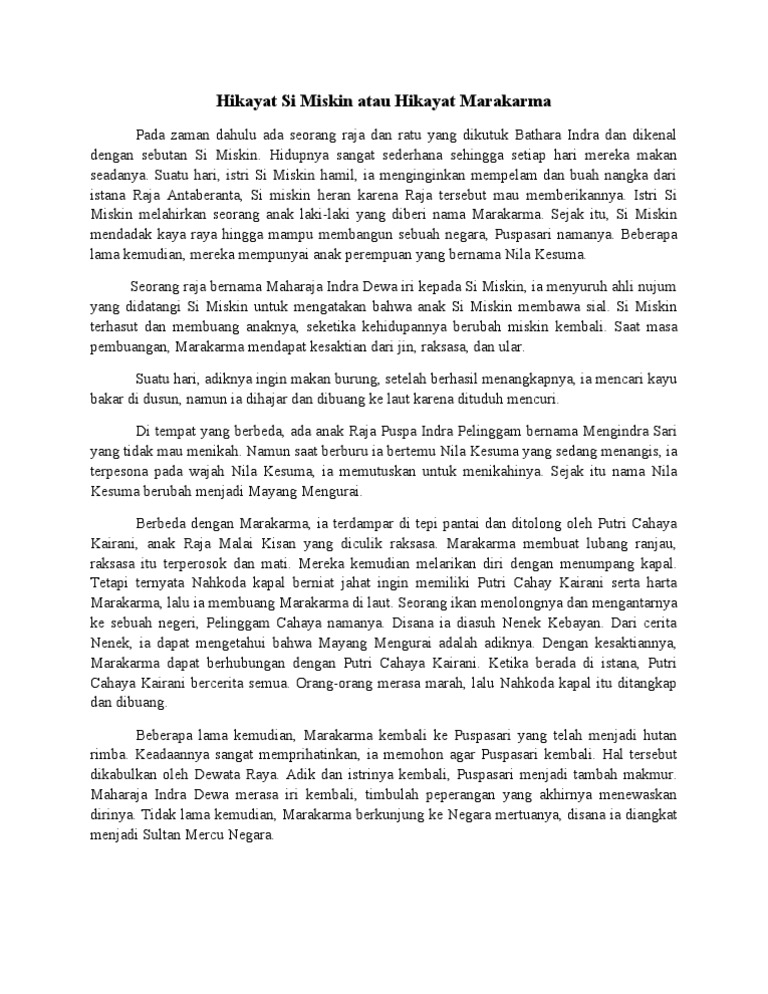 Hikayat Si - Hikayat Si Miskin Ada seorang suami istri yang dikutuk hidup miskin Pada suatu hari mereka mendapatkan anak yang diberi nama Marakarma dan | Course Hero