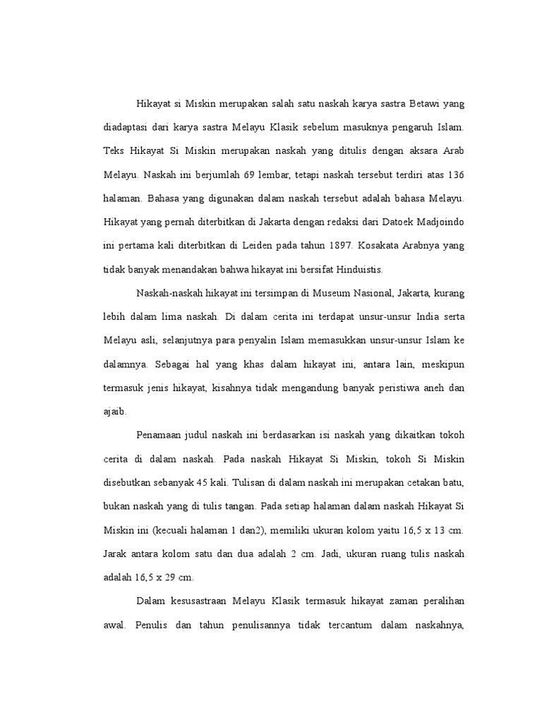DOC) Hikayat Si Miskin | Syukri Rahmatullah - Academia.edu
