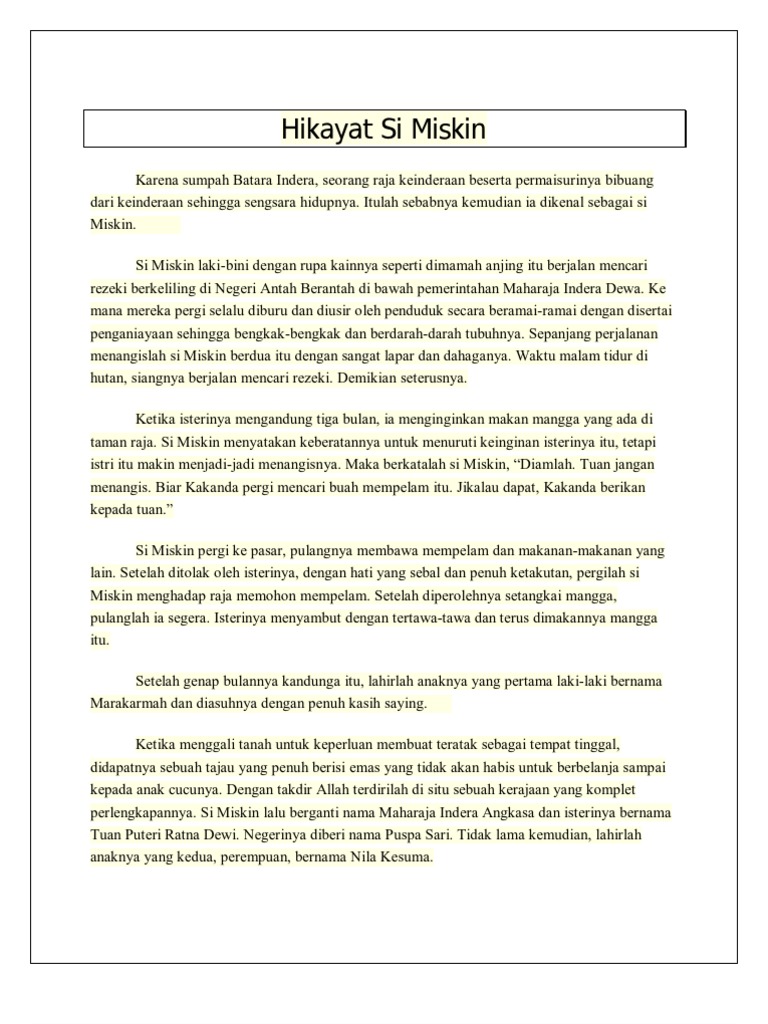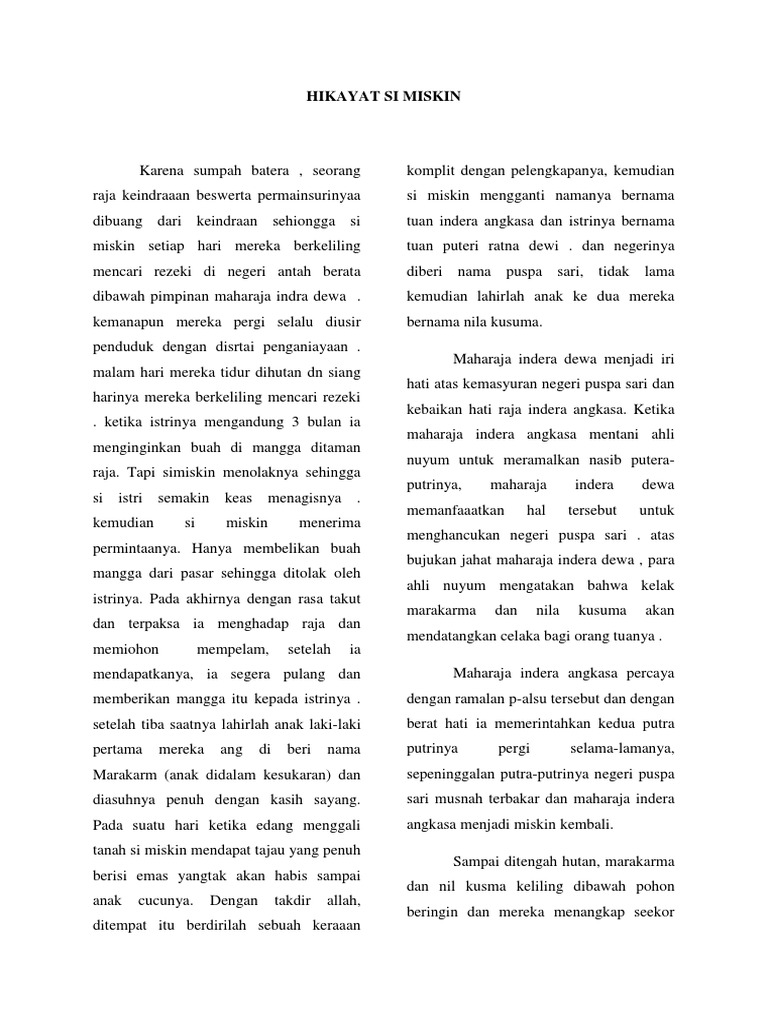 DOC) Analisis Hikayat si Miskin | Titin Ira - Academia.edu