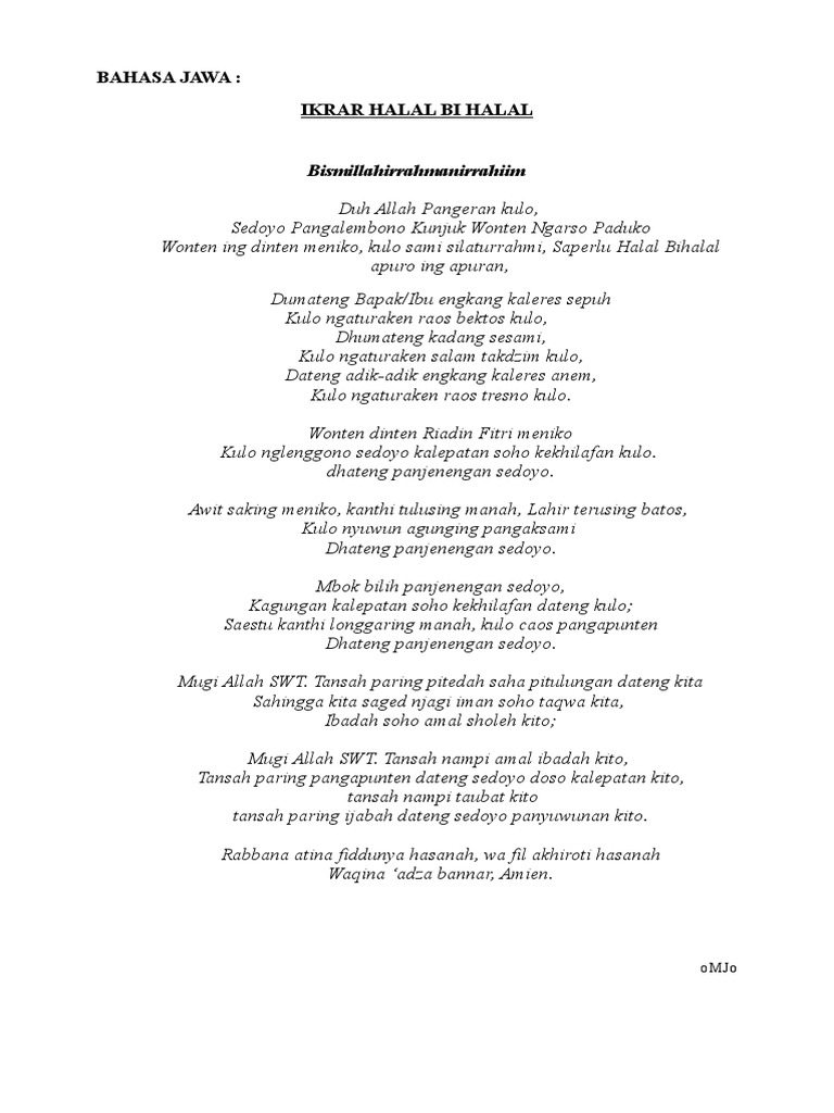 Contoh Ikrar Halal bi Halal Bahasa Jawa - de Travelloving